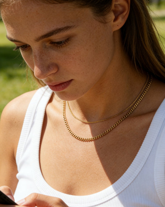 Setze auf den Layering-Look mit ikonischen Ketten, Anhänger-Halsketten, Perlen und Schmuckstücken mit Edelsteinperlen – plus Choker oder Münzketten. Du weißt nicht, womit du anfangen sollst? Hol dir mehr für weniger mit einem Halsketten-Set.